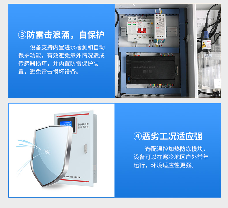產(chǎn)品描述:多參數(shù)水質(zhì)在線分析儀是本公司自主研發(fā)制造的新一代飲用水水質(zhì)監(jiān)測設(shè)備,該設(shè)備可廣泛用于城市或村鎮(zhèn)自來水廠、自來水輸水管網(wǎng)、自來水二次供水、用戶末梢、室內(nèi)游泳池、大型凈水設(shè)備和直飲水等水質(zhì)在線監(jiān)測,是水廠生產(chǎn)過程控制、水利水務(wù)管理、衛(wèi)生監(jiān)督等領(lǐng)域必不可少的在線分析設(shè)備。