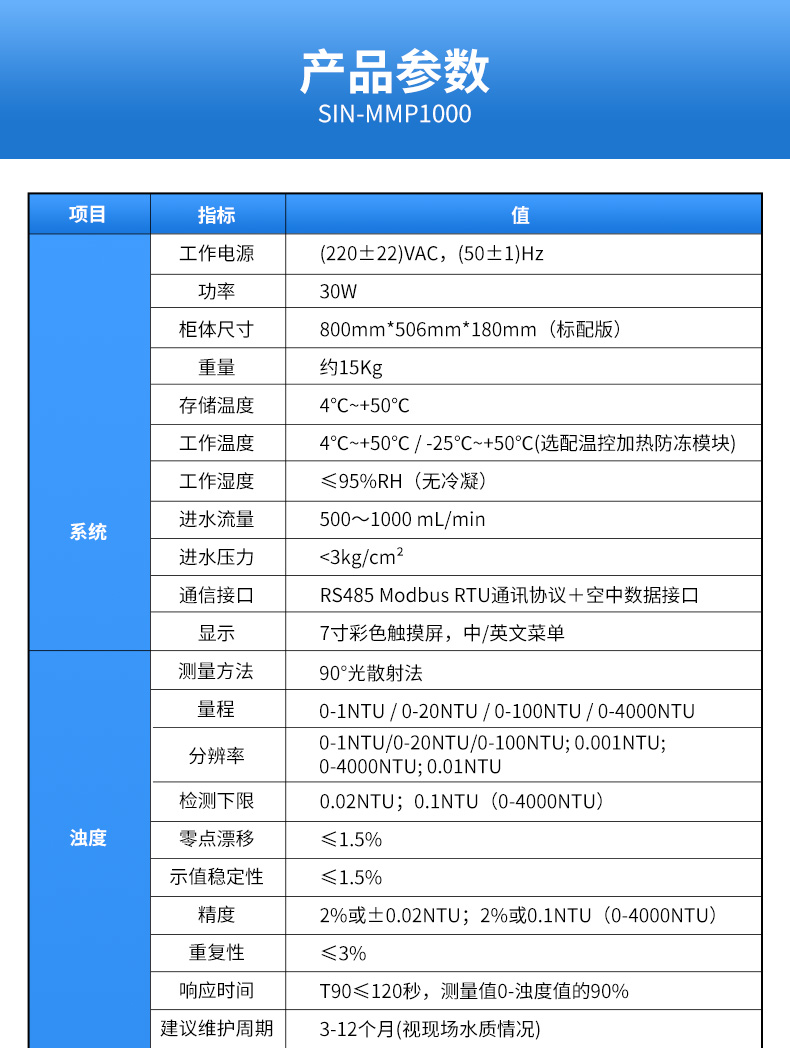 產(chǎn)品名稱:聯(lián)測SIN-MPP1000水質(zhì)在線分析儀濁度、余氯/二氧化氯、pH、溫度、電導(dǎo)率/TDS、溶解氧、ORP等