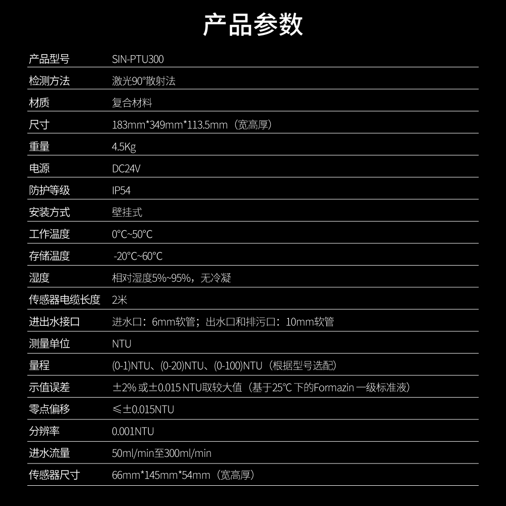 產品名稱:聯測SIN-PTU300在線濁度儀飲用水、泳池水、地表水、二次供水等